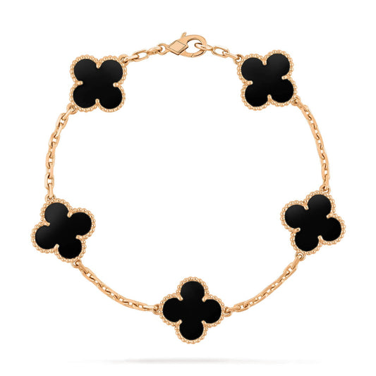 [vivabelle]CLOVER 5 MOTIFS BLACK ONYX BRACELET