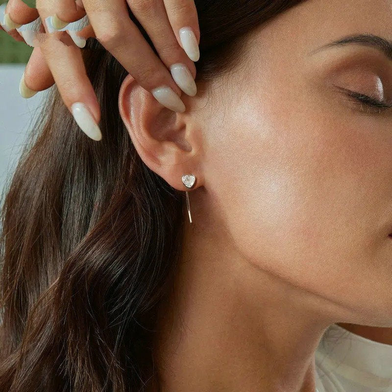 [Beschreibung] Die Herz-Ohrstecker mit langen Stiften sind zart und einzigartig. Die klassische Herzform macht sie süß und charmant.